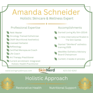 Amanda Schneider is the visionary founder and sole owner of Loving My Skin Spa, established in 2017. With a deep passion for holistic beauty and wellness, Amanda has earned international recognition as an award-winning esthetician, celebrated for her unique ability to blend relaxation with results-driven, corrective skincare treatments.